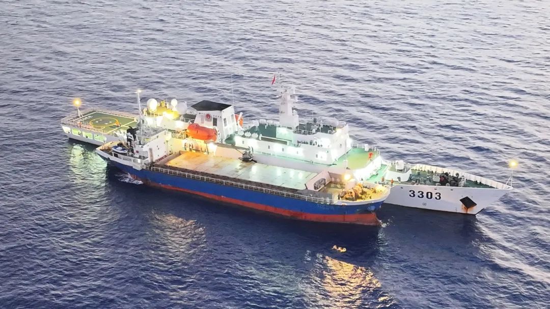 2024年9月,直属第三局破获“2024.9.25”特大走私毒品案,图为执法艇转移涉案人员